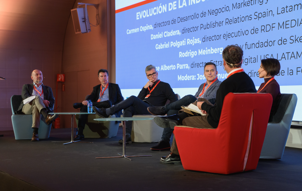 José Manuel Anta (director de la Federación de Gremios de Editores de España, FGEE) se encargó de moderar la última mesa de la tarde, invitando para ello a Carmen Ospina (directora de Desarrollo de Negocio, Marketing y Comunicación en Penguin Random House), Daniel Cladera (responsable de relaciones con editoriales para España, Latinoamérica y Brasil en Audible), Gabriel Polgati Rojas (director ejecutivo de RDF Media y Storytel Chile), Rodrigo Meinberg (fundador y CEO de Skeelo) y José Alberto Parra (director de Estrategia Digital para Estados Unidos y Latinoamérica en Grupo Planeta).